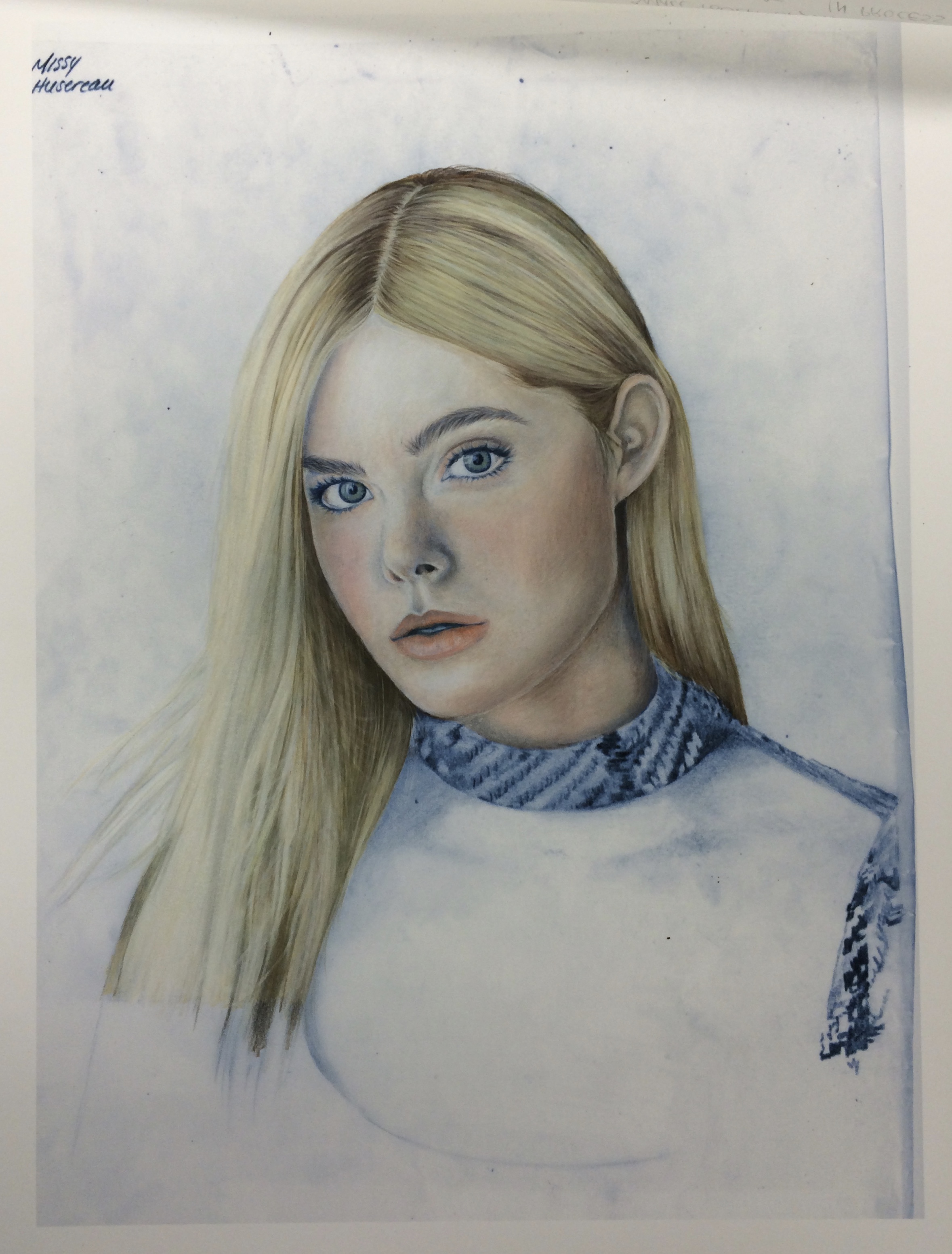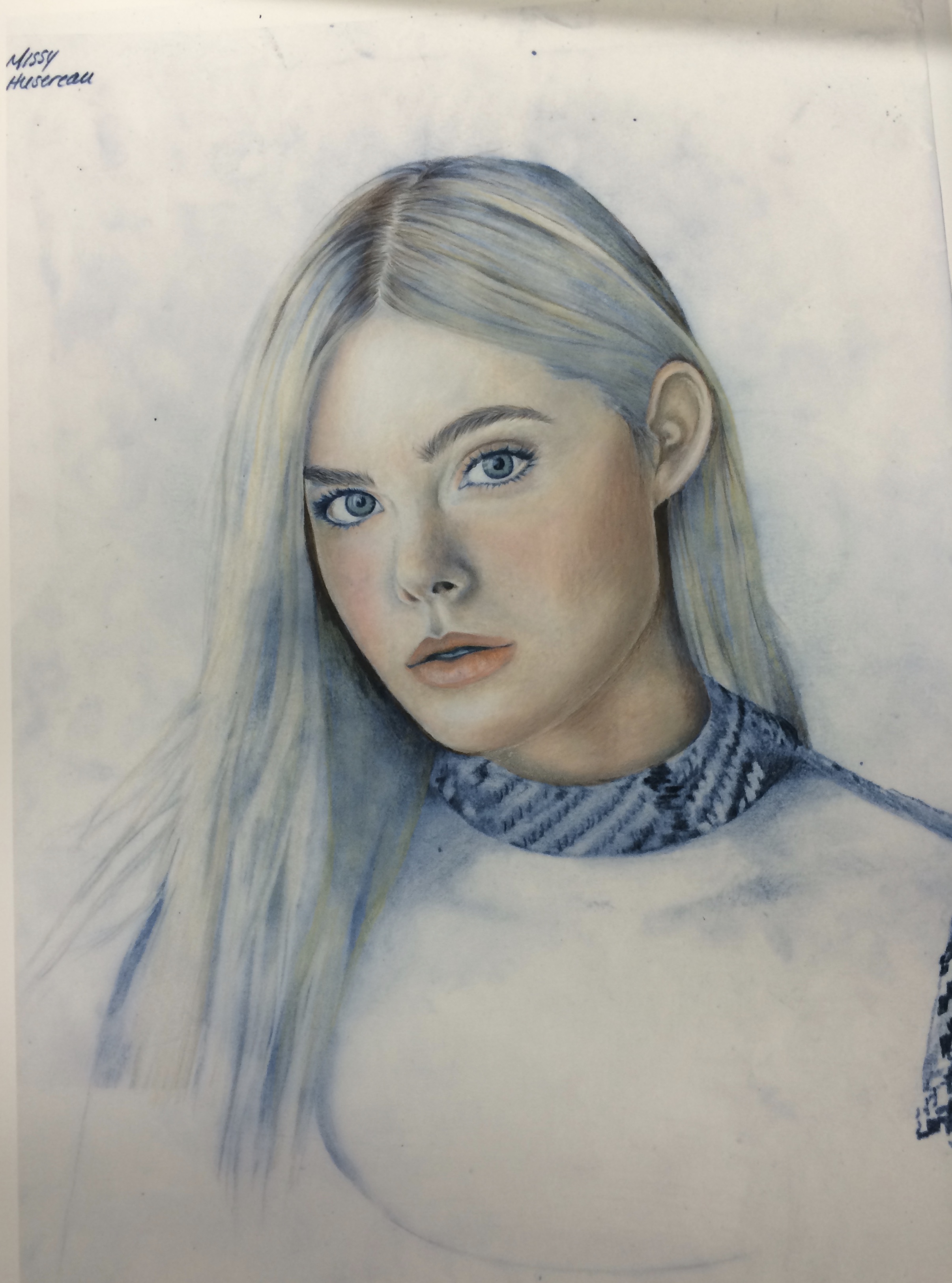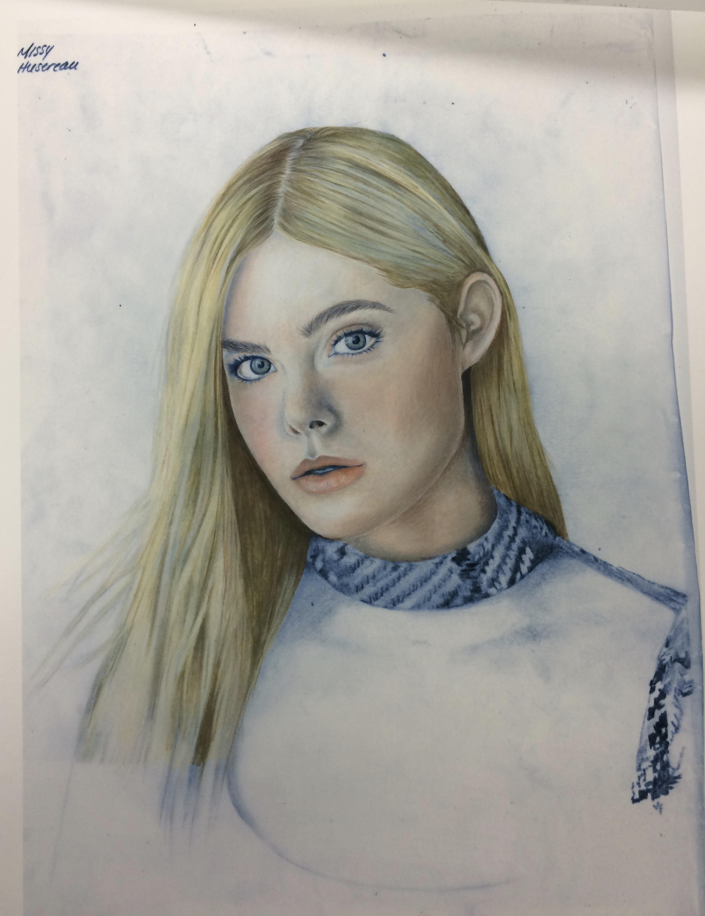 A colored pencil illustration of actress Elle Fanning for an illustration course project.